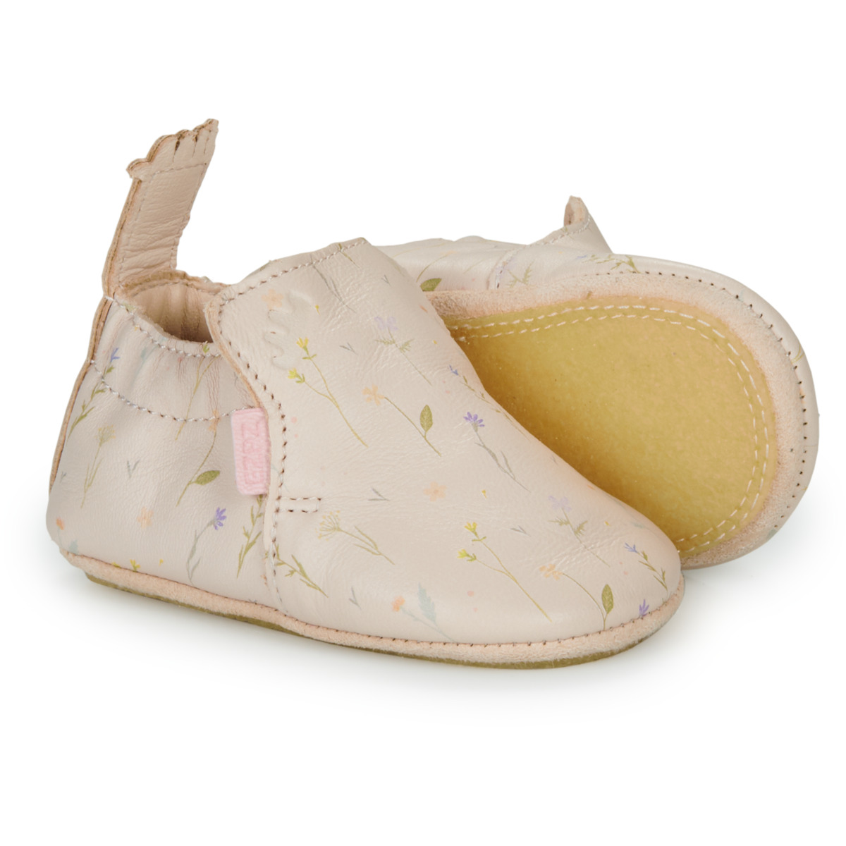 La semelle intérieure des chaussons contient un insert en hévéa naturel pour le confort et l’isolation, enveloppé de cuir à tannage végétal. Elle est amovible pour un nettoyage facile. La semelle extérieure en cuir velours et dotée d’un patin en crêpe naturel. Enfin, la doublure du chausson est en cuir tanné végétal naturel, et anti-allergique, même pieds-nus !
