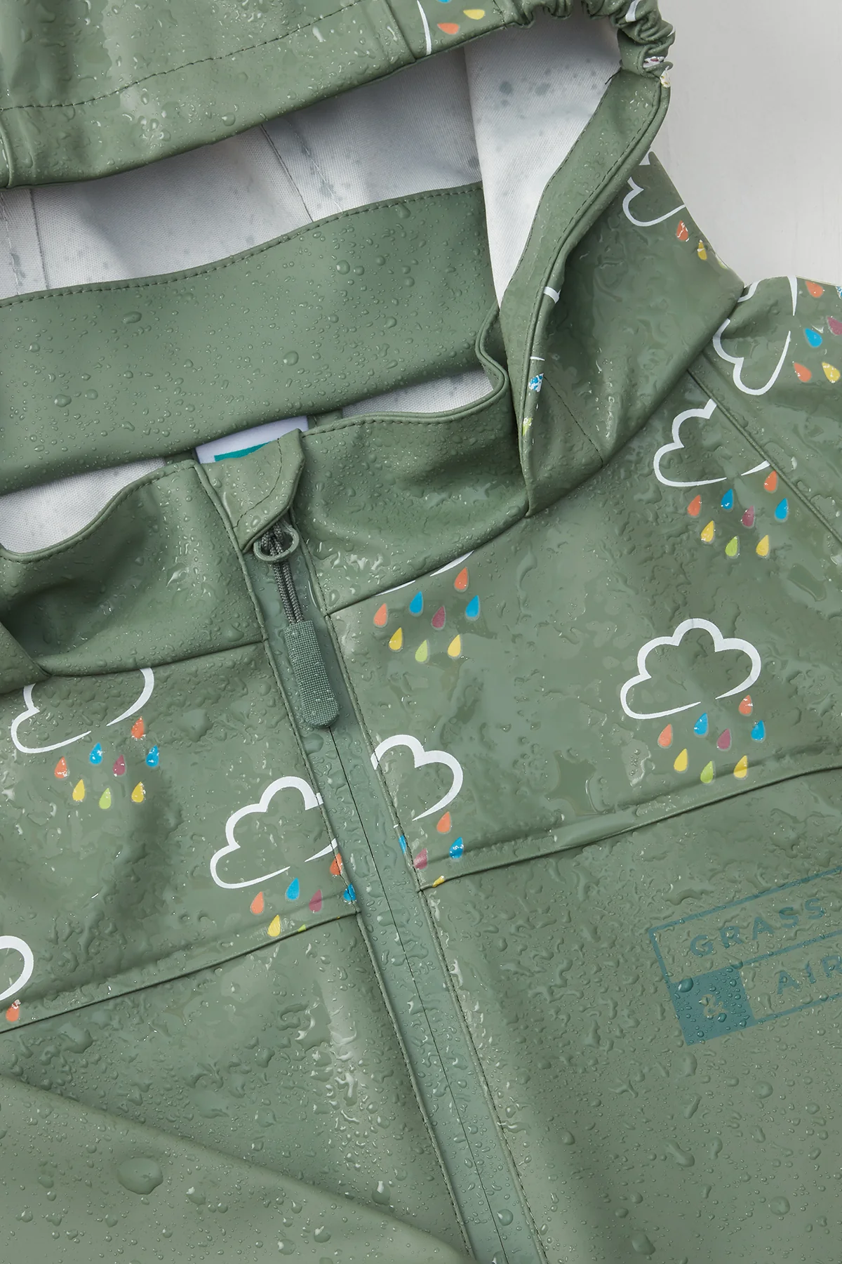 Conçu pour les petits qui aiment jouer sous la pluie, notre imperméable kaki change de couleur lorsqu’il est mouillé ! ☔