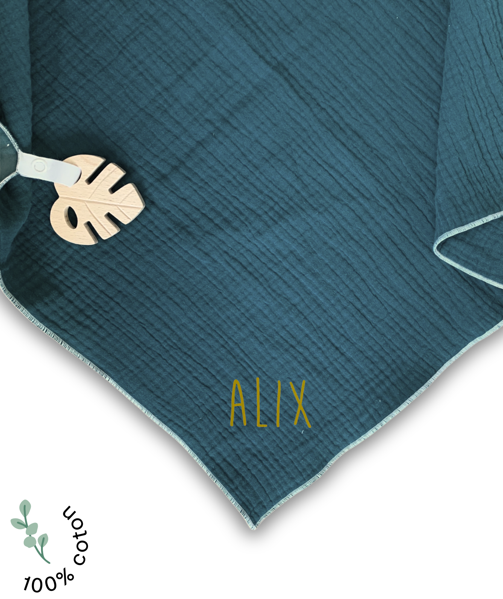| Composition | Double gaze 100% coton Jouet en bois non traité |