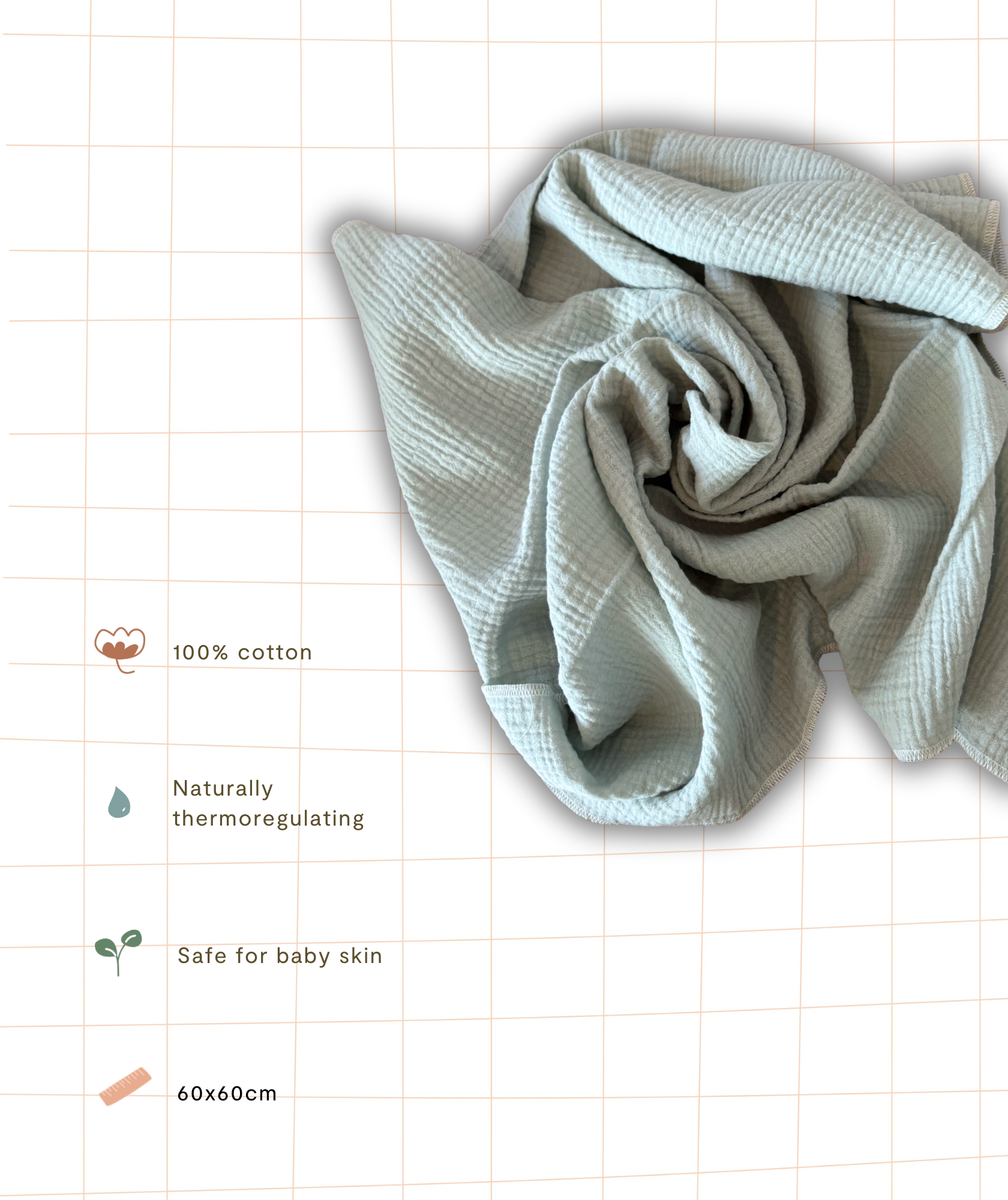 | Composition | Double gaze 100% coton Jouet en bois non traité |